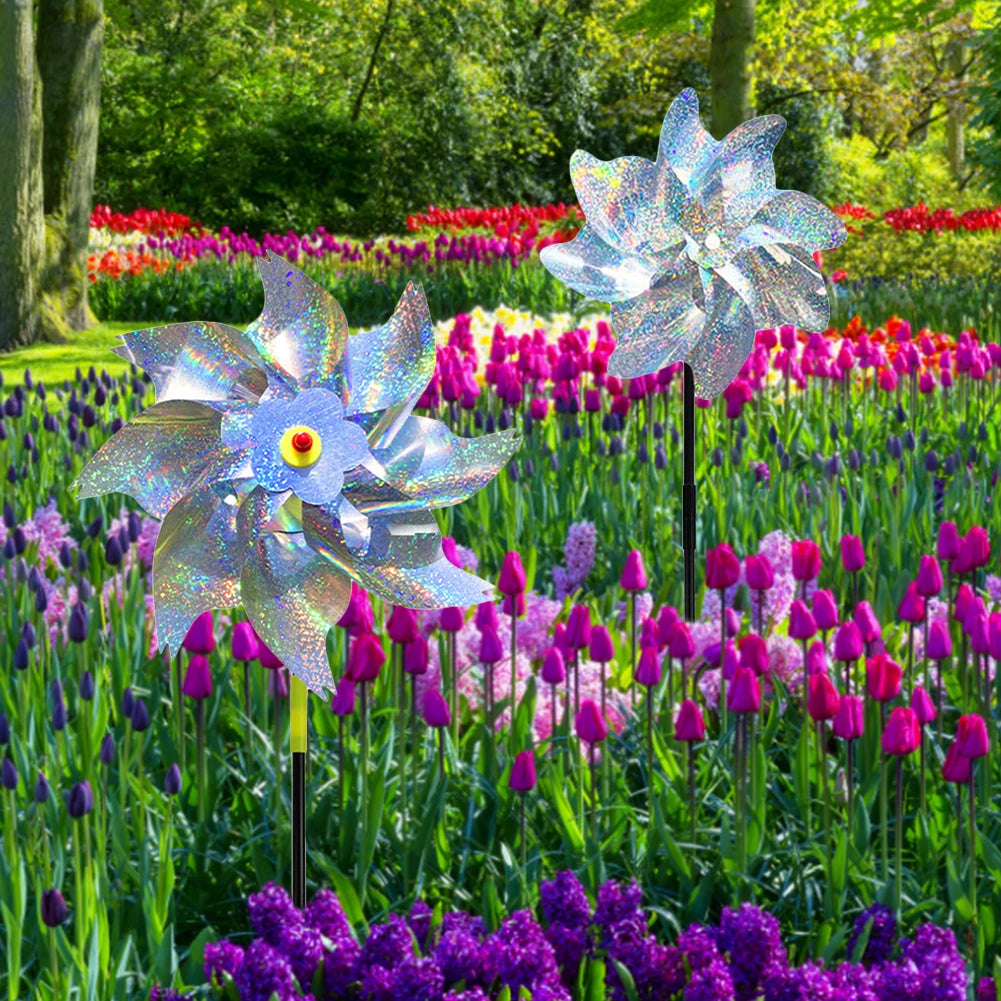 Silver Anti Bird Laser Windmill Bird Repeller Windmill Pinwheels Reflective Bird Scare Deterrent Driving Windmill Garden Decor