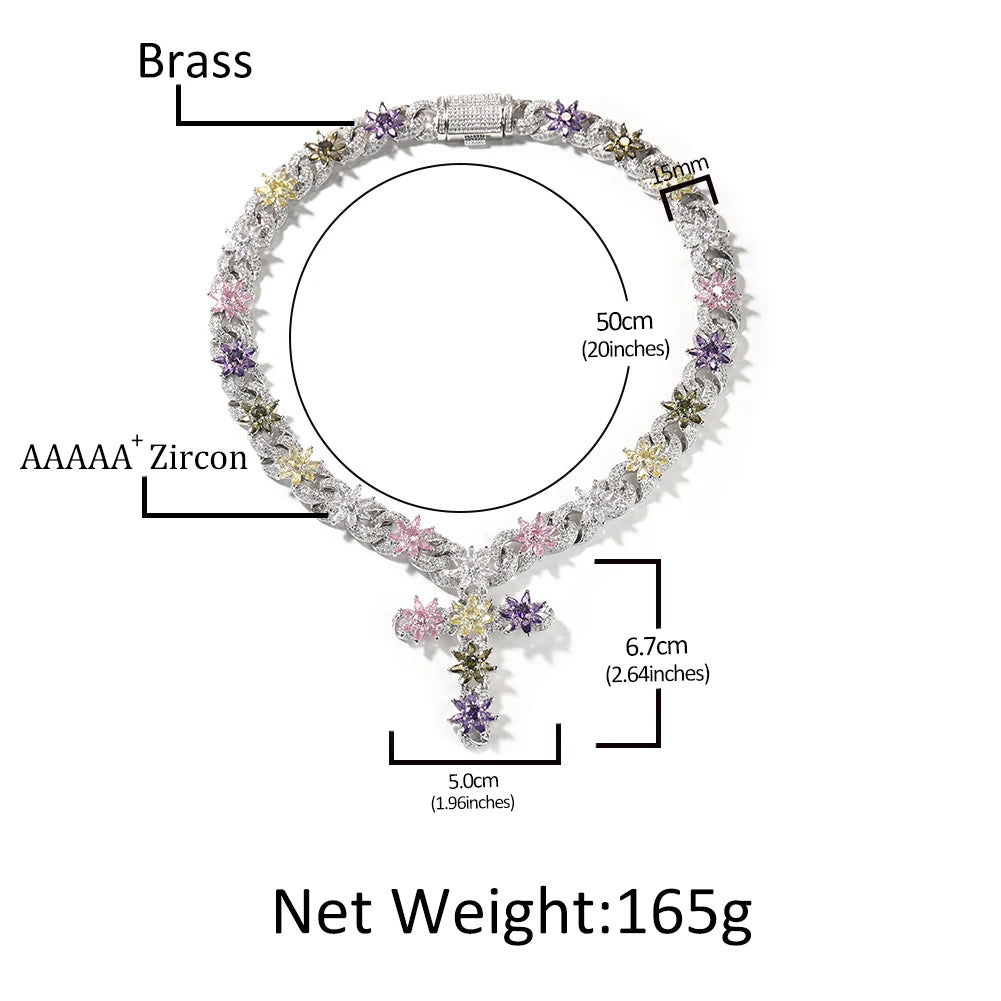 Colorful Flower Cuban Chain - Full Paved Iced Out Baguette CZ Hip Hop Necklace | Primesmarket