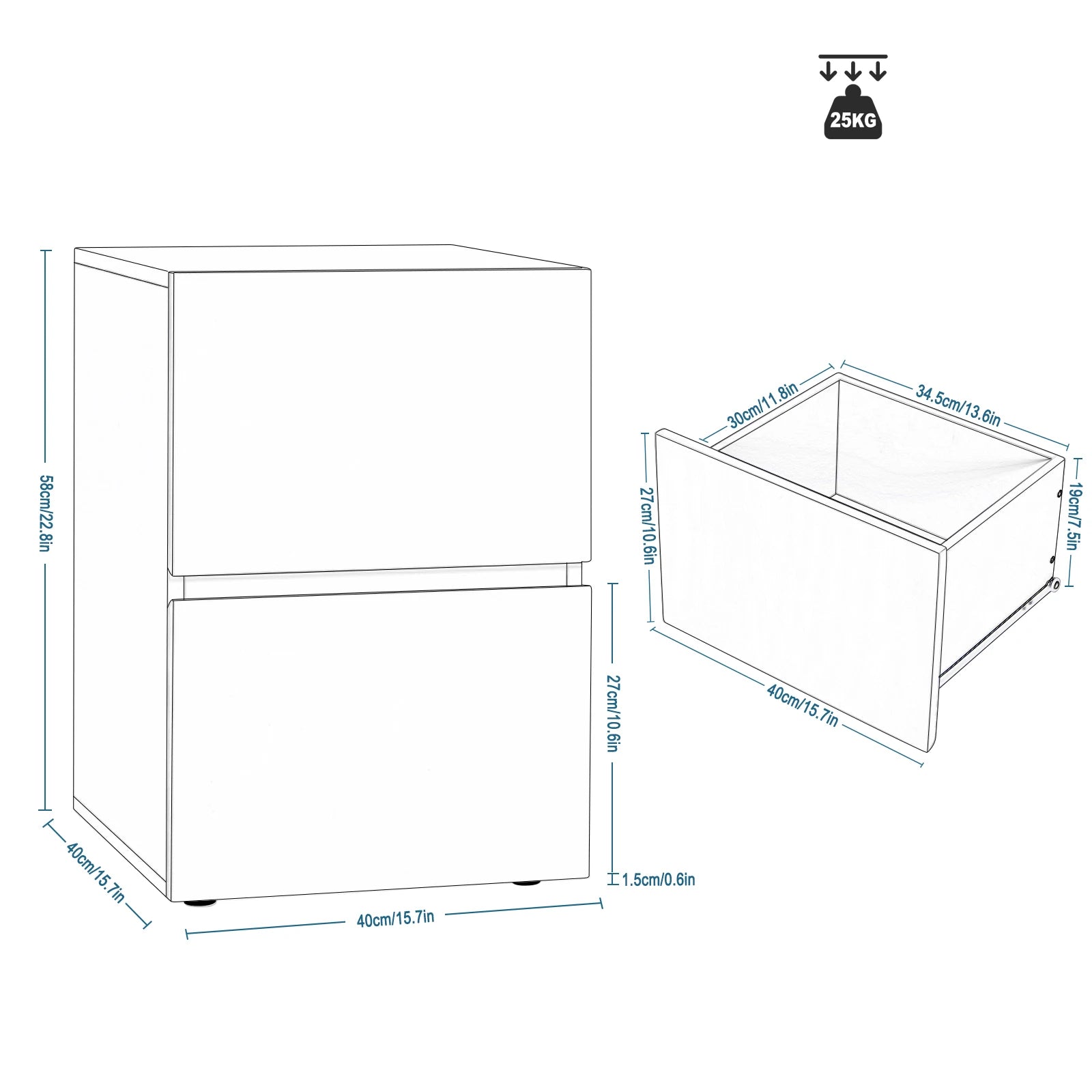 1PC Bedside Table with 2 Glossy Drawers Large Storage Space 40x40x58cm Scandinavian Style Nightstand for Bedroom Living Room
