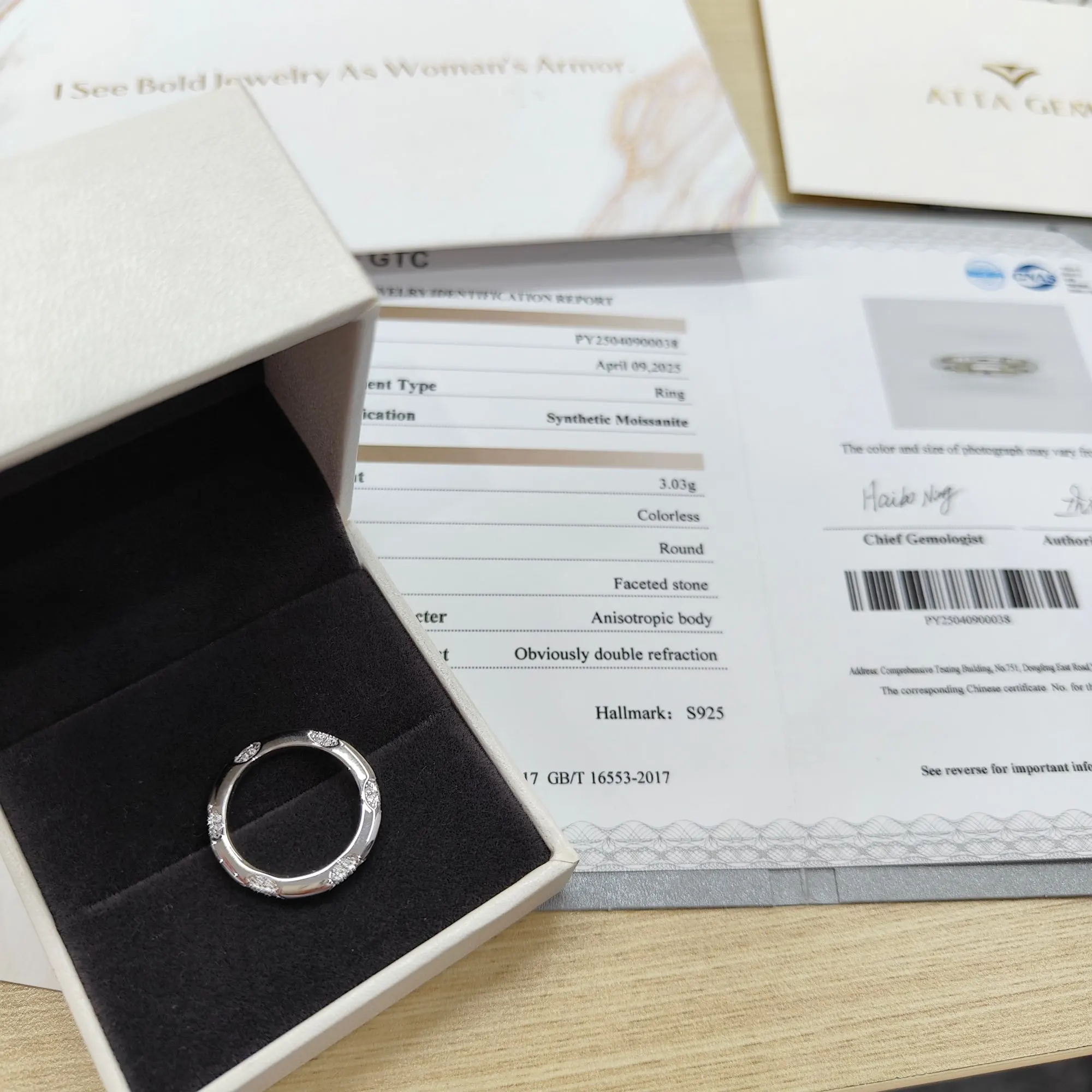 A very nice ring, has the s925 stamp. It arrived beautifully packed, in a white box, I am delighted. I have size EU 9/10 and cn 5 fits great