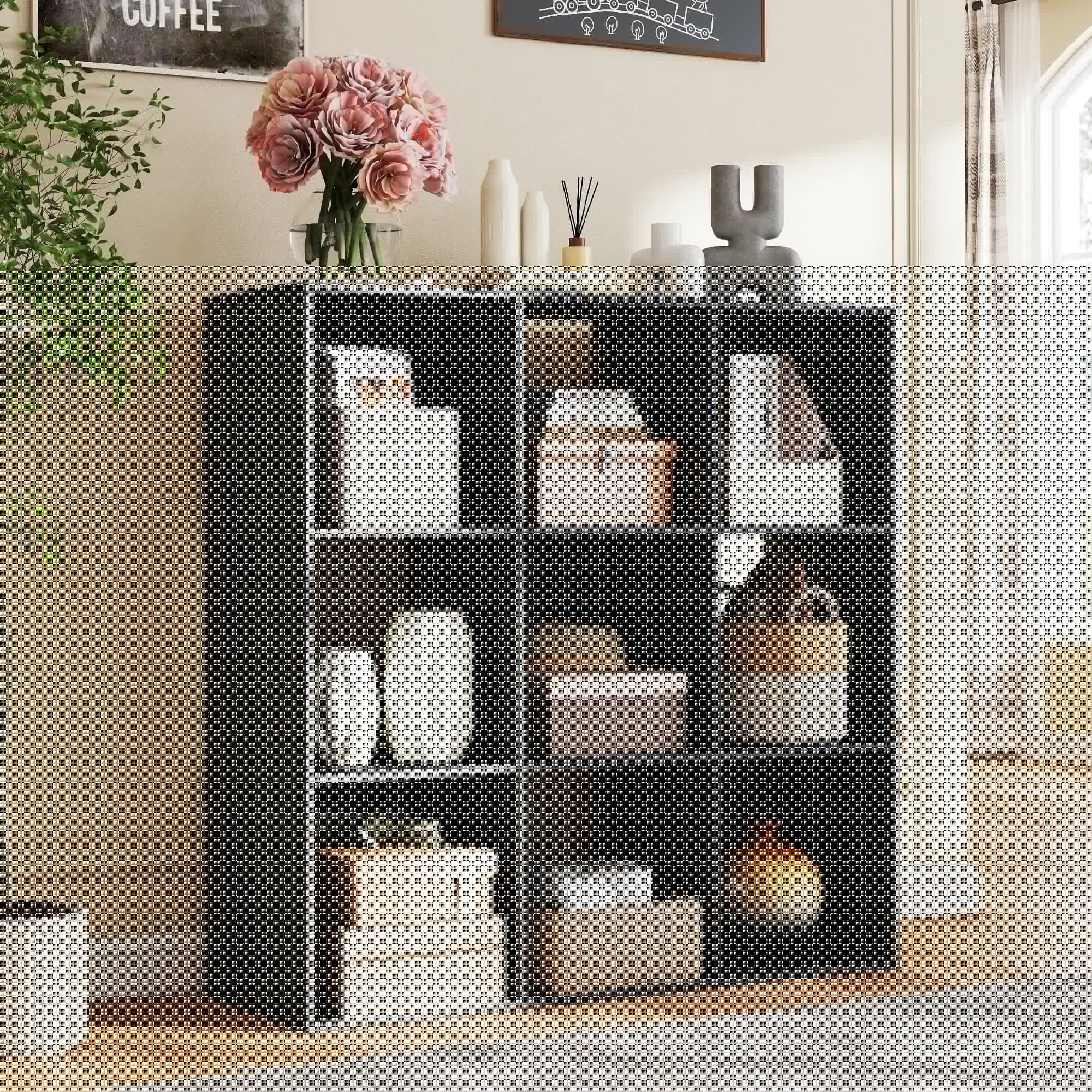 [Large Capacity Storage] Cubby storage organizer (36"L x 11.6"W x 36"H) features 9 spacious compartments (11.2"W x 11.2"H x 11.7"D each), providing ample storage for books, toys, office supplies, and more.this space-saving shelf keeps your essentials neatly stored and within reach!