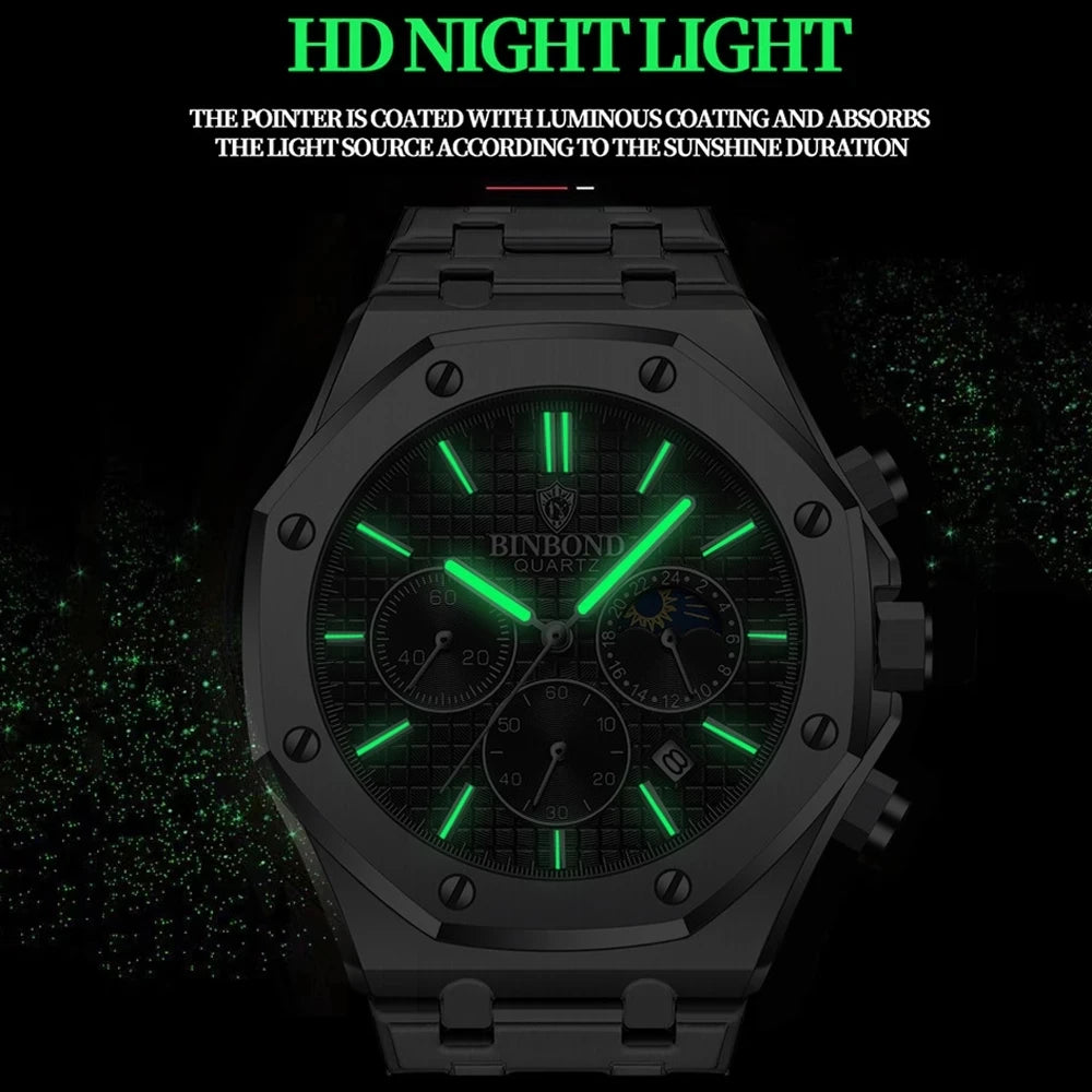 BINBOND B0161 Men's Luxury Luminous Waterproof Stainless Steel Watch